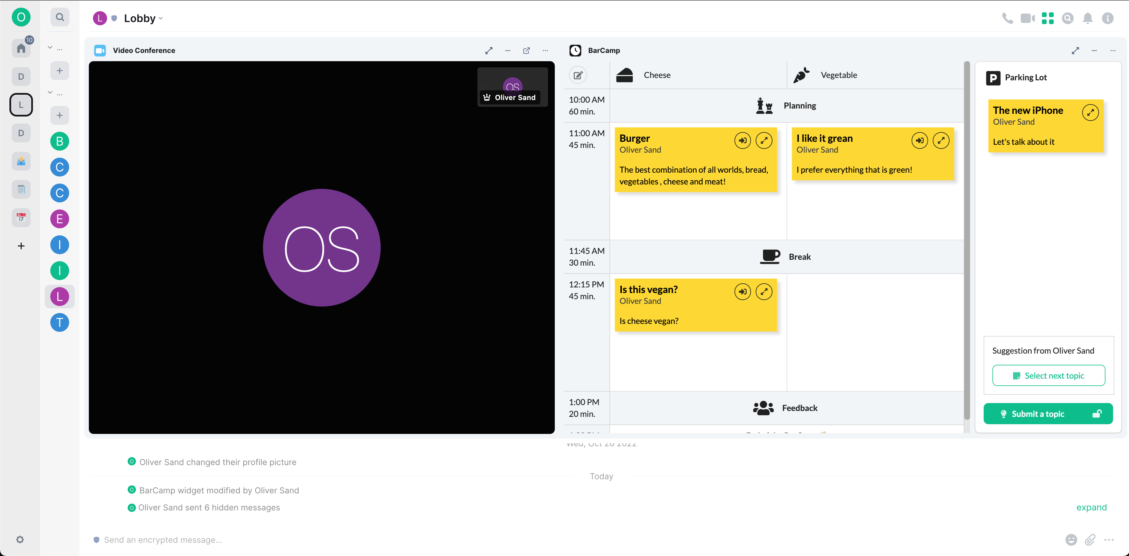 The matrix-barcamp widget allows to perform agile Barcamps in Matrix spaces. You can create a space, add the widget to a Lobby room and use it to collaboratively create your Barcamp agenda. Once you set up your sessions, the widget can take care of creating the individual discussion rooms inside the space. The widget was created in collaboration with the ZIT SH from the German public sector. Like the matrix-poll widget, this widget is built using TypeScript, React, our matrix-widget-toolkit, and the matrix-widget-api. Our remaining widgets will follow soon, we keep you updated here.